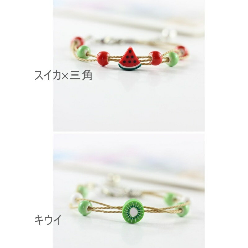送料無料ブレスレット レディース アクセサリー ビーズ 紐 クリアカラー アジャスター ケーキ フルーツ キャラクター イエロー 学生 子ども プレゼント ギフト 誕生日